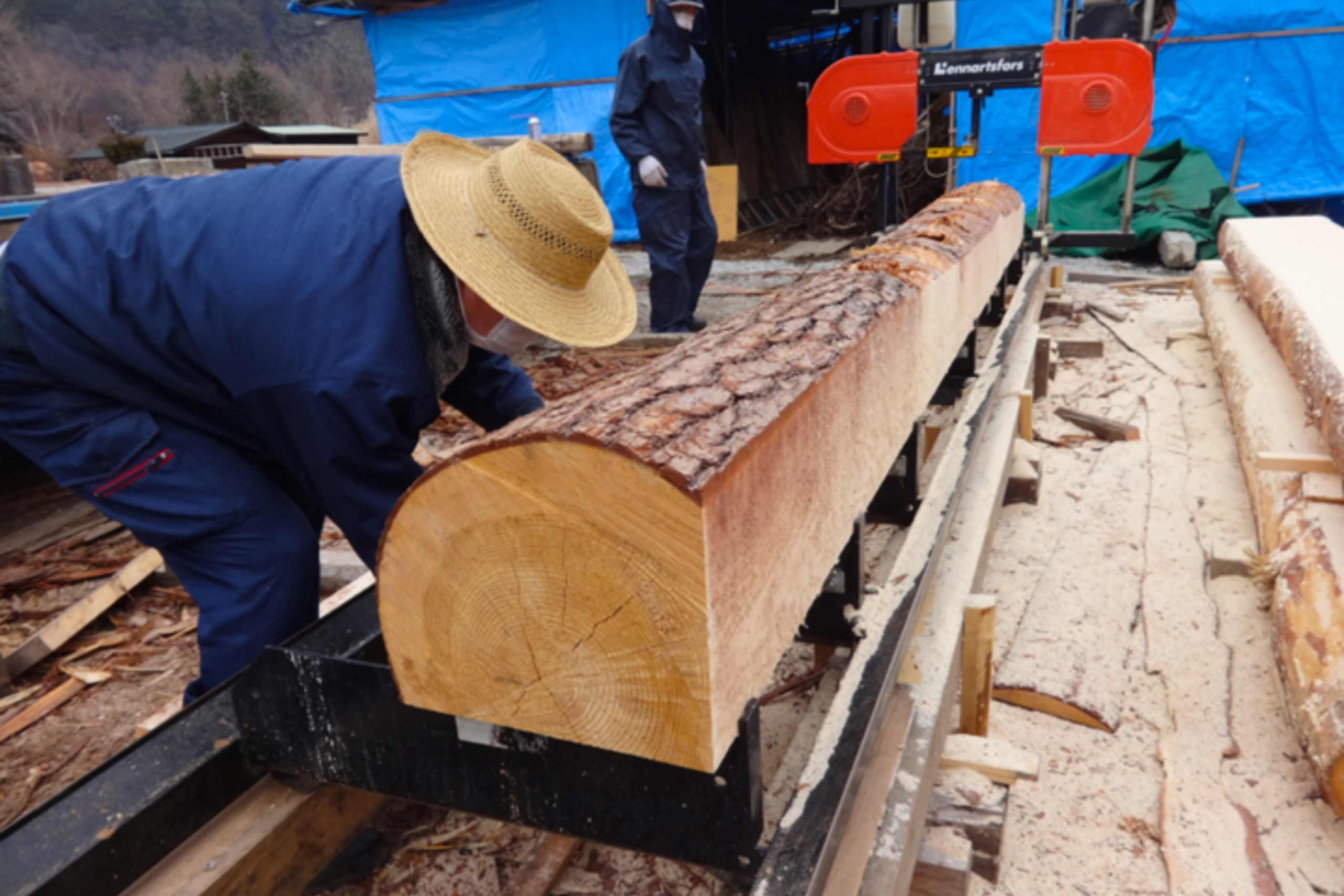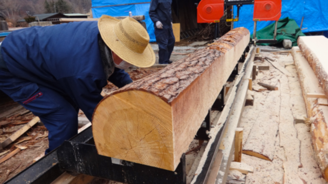 家は木で作ります。木は山で育てられます。家に使う木を長野県内外の材木市場に出向き選んだり、時には山に入って、質が良く家に適した木を選びます。